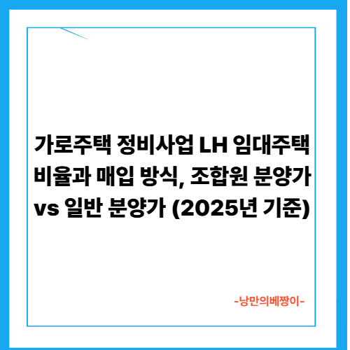 🏘️ 가로주택 정비사업 LH 임대주택 비율과 매입 방식, 조합원 분양가 vs 일반 분양가 (2025년 기준)