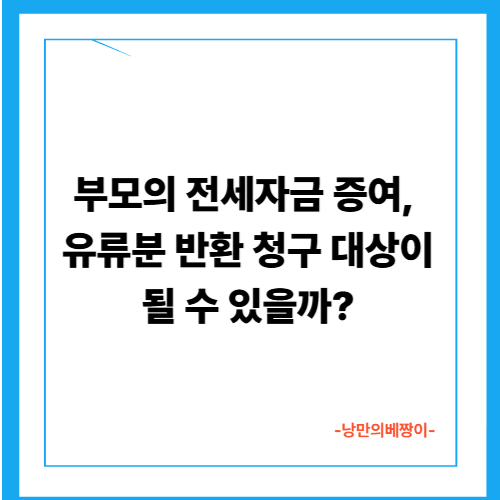 부모의 전세자금 증여, 유류분 반환 청구 대상이 될 수 있을까?