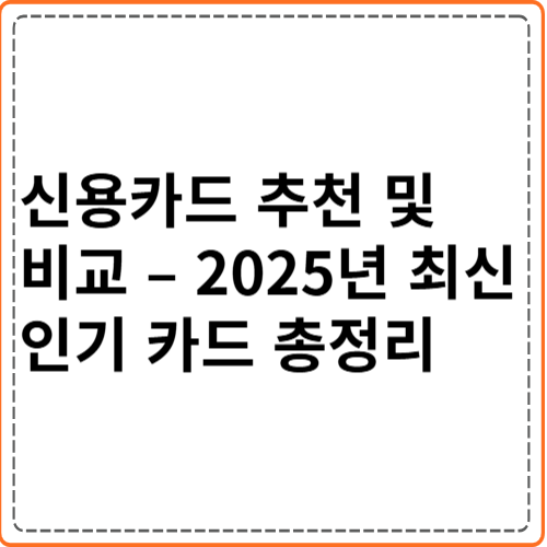 신용카드 추천 및 비교 – 2025년 최신 인기 카드 총정리