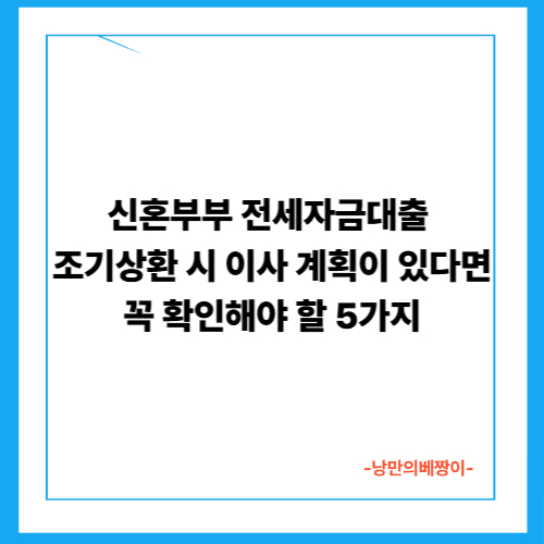 신혼부부 전세자금대출 조기상환 시 이사 계획이 있다면 꼭 확인해야 할 5가지
