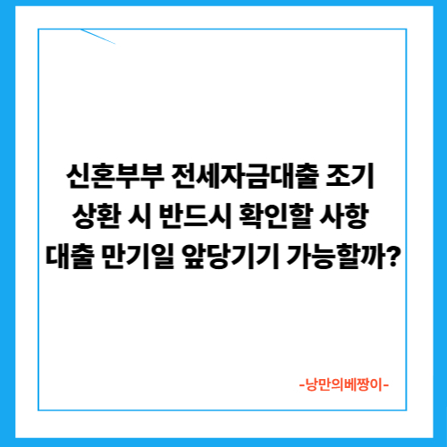 - 신혼부부 전세자금대출을 조기 상환하려면 반드시 은행과 사전 협의가 필요합니다.