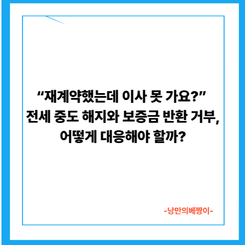 | “재계약했는데 이사 못 가요” 전세 중도 해지와 보증금 반환 거부, 어떻게 대응해야 할까 (0) | 2025.10.20 |