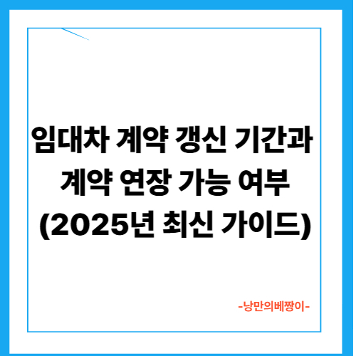 임대차 계약 갱신 기간과 계약 연장 가능 여부 (2025년 최신 가이드)
