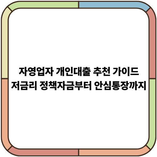 자영업자 개인대출 추천 가이드|저금리 정책자금부터 안심통장까지