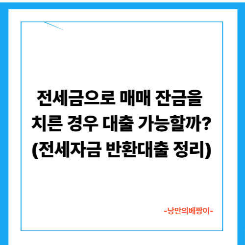 전세금으로 매매 잔금을 치른 경우 대출 가능할까? (전세자금 반환대출 정리)