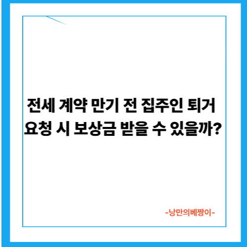 전세 계약 만기 전 집주인 퇴거 요청 시 보상금 받을 수 있을까?