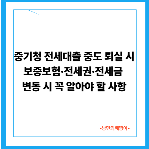 중기청 전세대출 중도 퇴실 시 보증보험·전세권·전세금 변동 시 꼭 알아야 할 사항