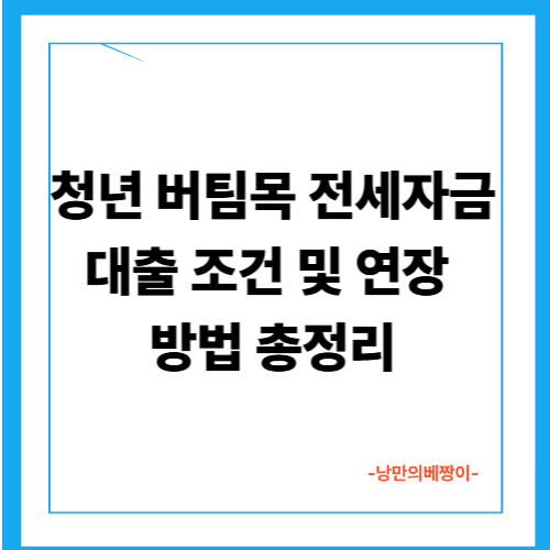 청년 버팀목 전세자금 대출 조건 및 연장 방법 총정리