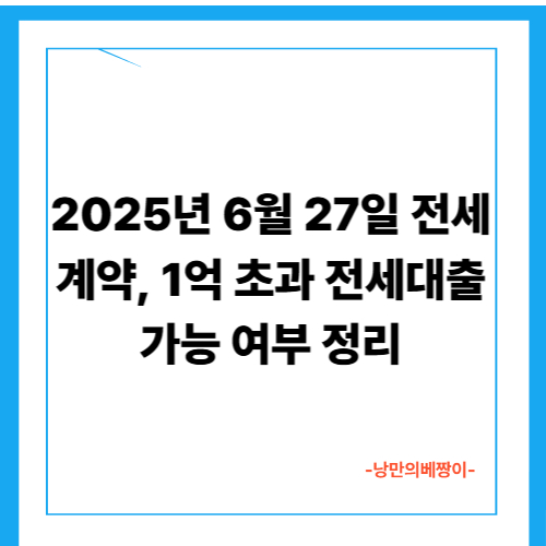 2025년 6월 27일 전세계약, 1억 초과 전세대출 가능 여부 정리