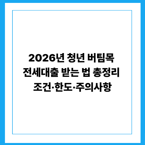 2026년 청년 버팀목 전세대출 받는 법 총정리 (조건·한도·주의사항)