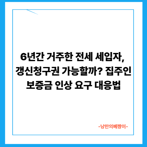 6년간 거주한 전세 세입자, 갱신청구권 가능할까? 집주인 보증금 인상 요구 대응법